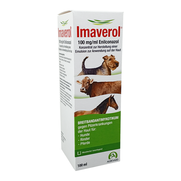 У крупного рогатого скота и лошадей лечебной эмульсией обрабатывают пораженные участки тела вместе с пограничными участками здоровой кожи. В связи с присутствием дерматофитов в волосяных фолликулах, все корочки на теле животного следует удалять жесткой щеткой, смоченной лечебной эмульсией Имаверола.
