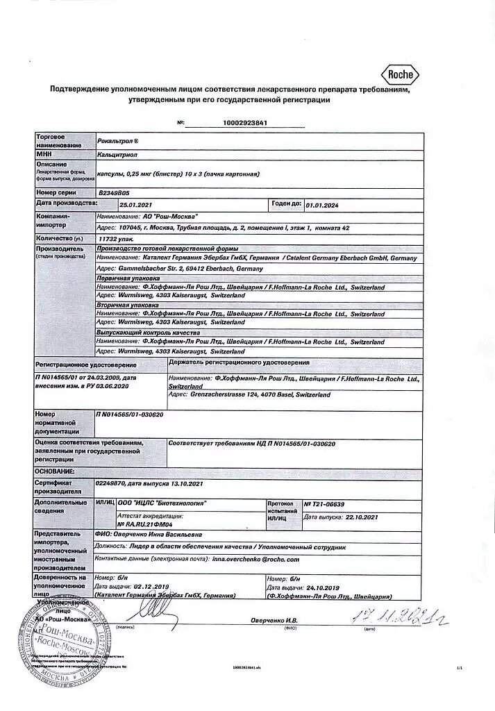 Форма выпуска, упаковка и состав препарата Рокальтрол®