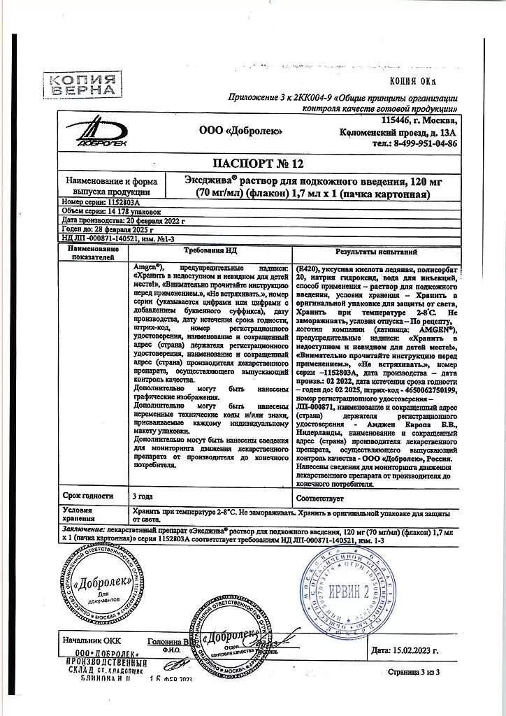 Срок годности препарата Эксджива