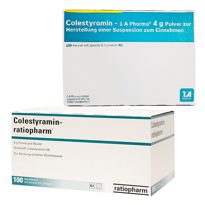 Немецкая компания Ratiopharm gmbh производит действенное антисклеротическое средство Холестирамин в виде беловатого либо желтоватого цвета порошка для приготовления раствора для орального приема. У готовой суспензии приятный вкус.