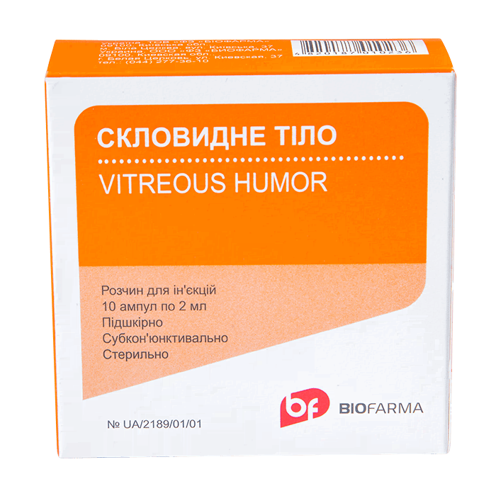 Действующее вещество: 1 ампула содержит стекловидного тела 2 мл.
