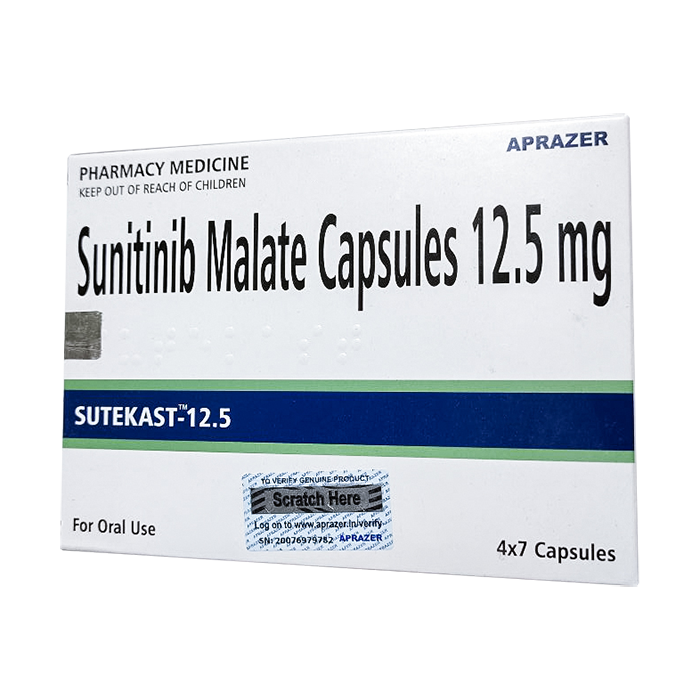 Сунитиниб Sutekast (аналог Сутент) – противоопухолевый препарат, ингибитор протеинкиназы. Sutekast отменно понижает уровень ферментных и прочих физико-химических процессов, которые задействованы при развитии опухоли у пациента и формировании метастазов. Активный элемент препарата –Сунитиниб, обладает отменными ингибирующими свойствами для большого количества белков и ферментов, которые продвигают развитие злокачественного новообразования.