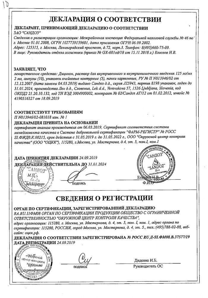 Форма выпуска и состав препарата Дицинон