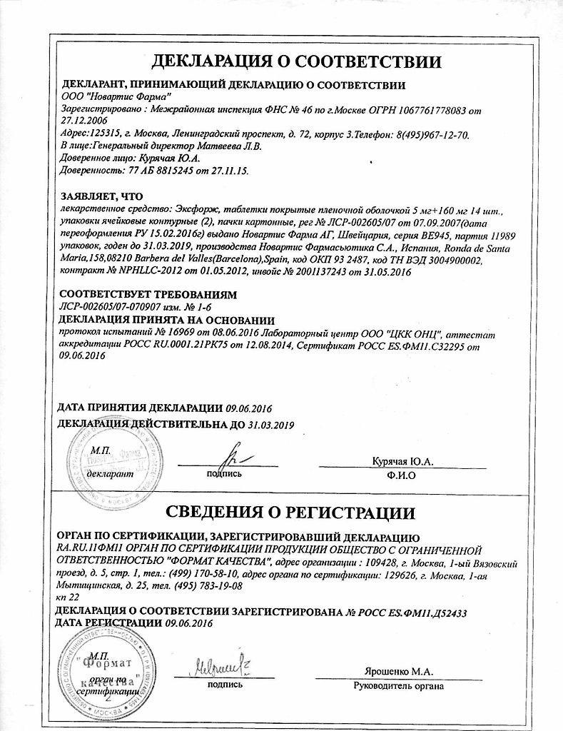 Активные вещества: амлодипина бесилат 5 мг, валсартан 160 мг.