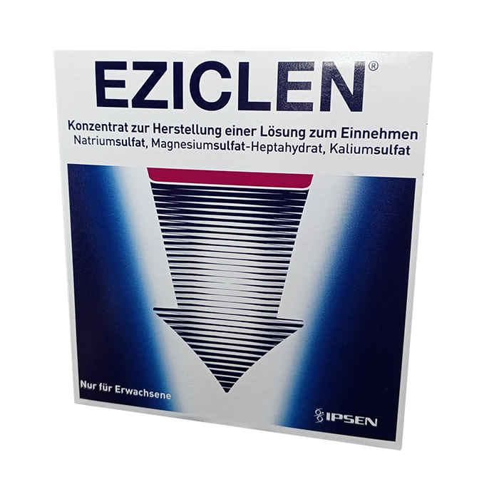 Препарат Эзиклен® предназначен для очищения толстой кишки у взрослых пациентов при подготовке к эндоскопическому и радиологическому исследованию толстой кишки или к хирургическим вмешательствам, требующим отсутствия содержимого в толстой кишке.